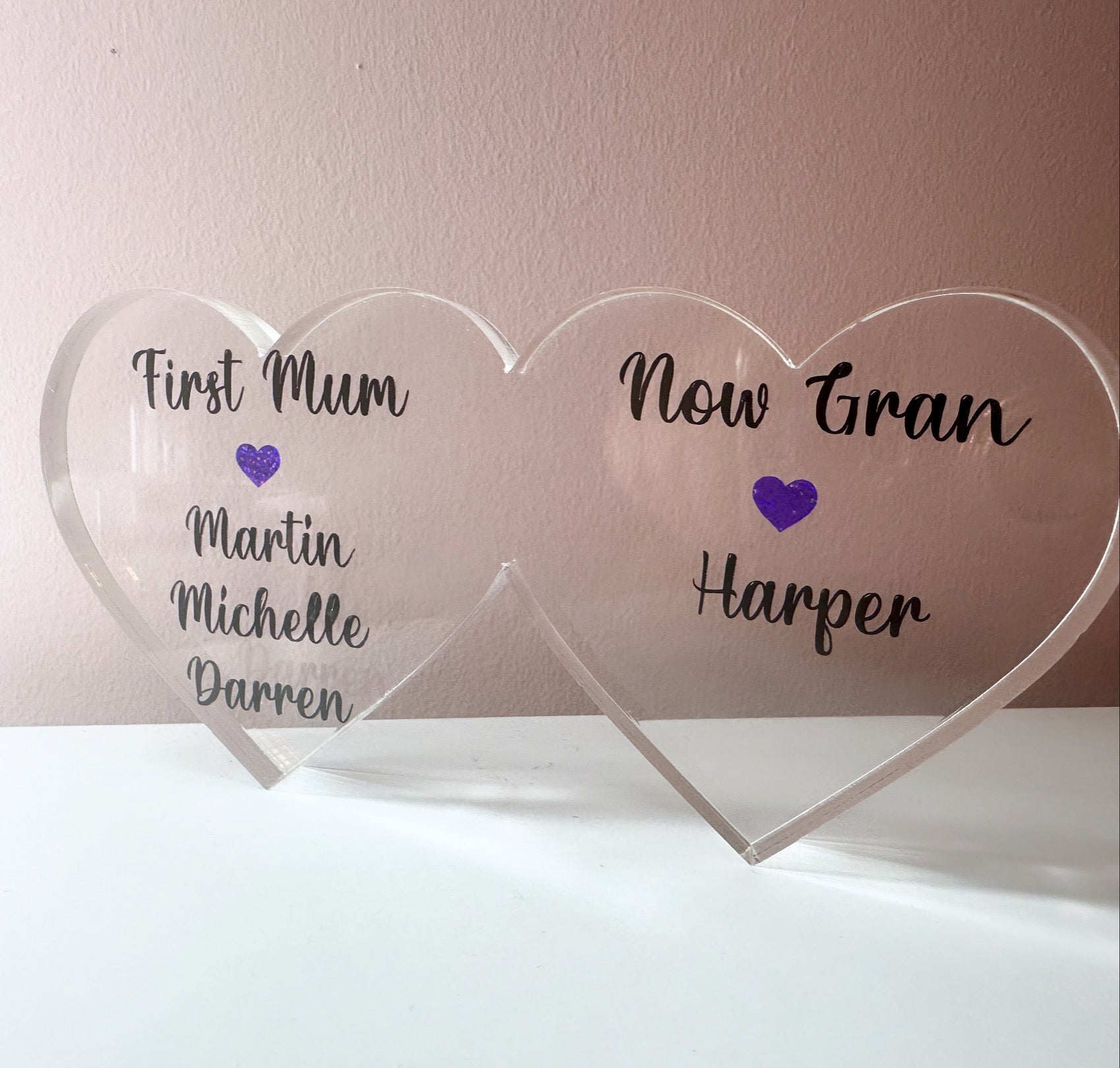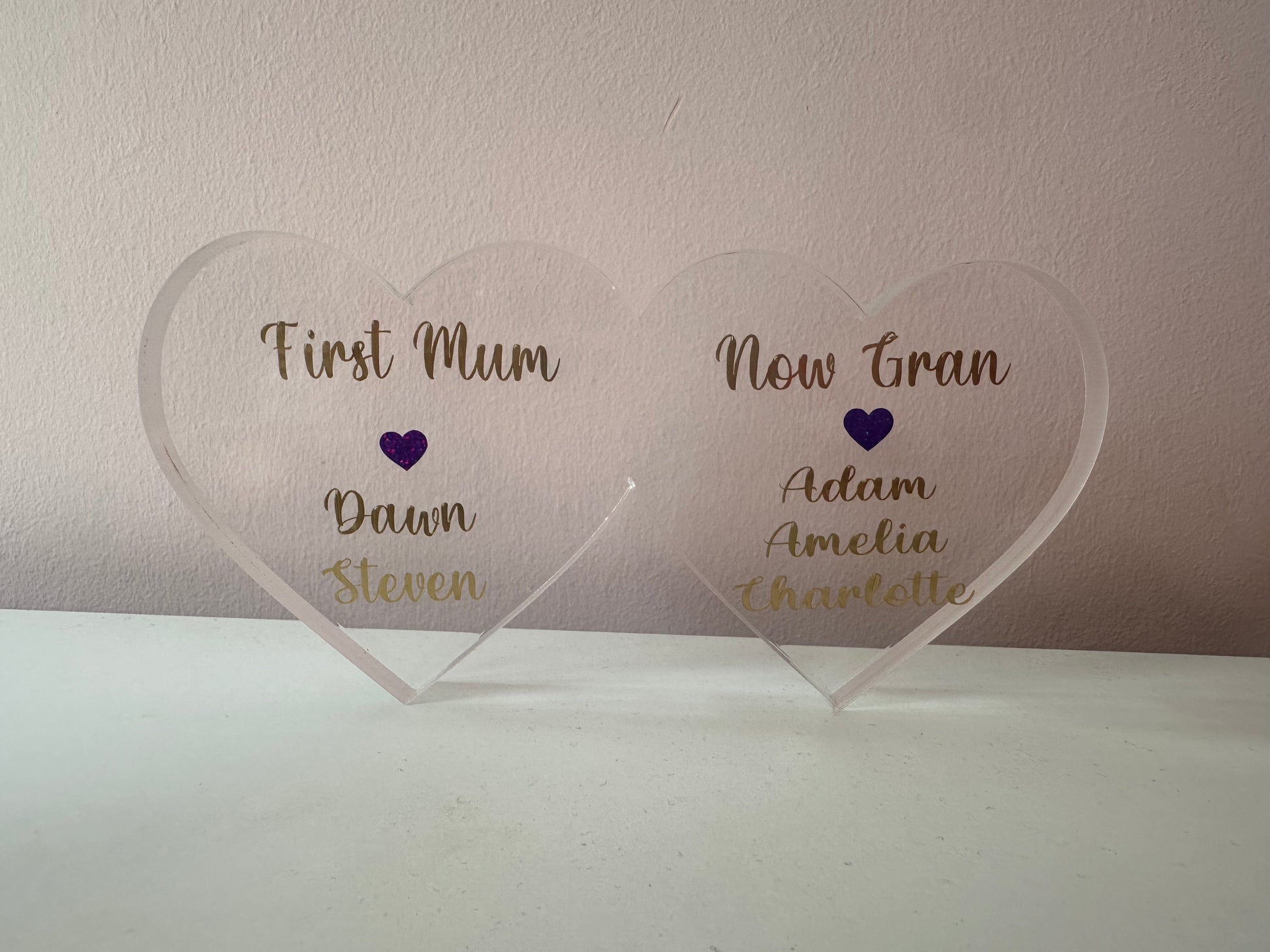Celebrate Mother's Day with our Acrylic Hearts, perfect for that special mum who is now a grandmother. Measuring 15cmx7.5cm, these hearts are a beautiful and lasting way to show your appreciation.